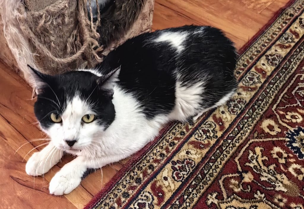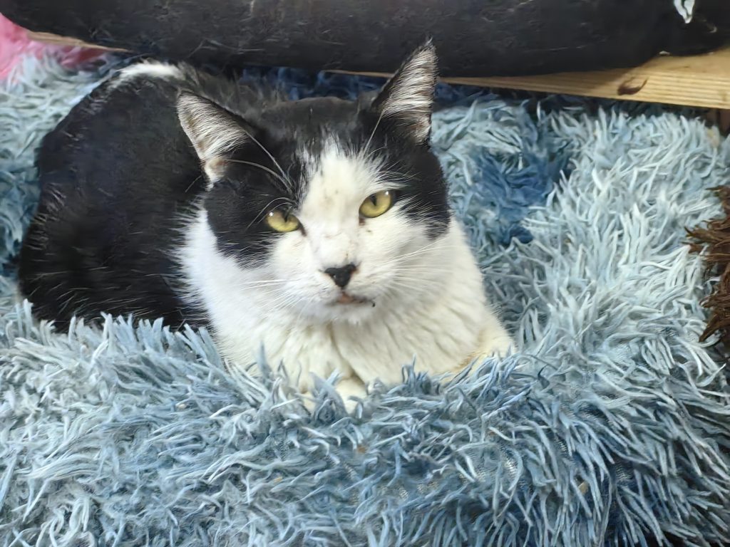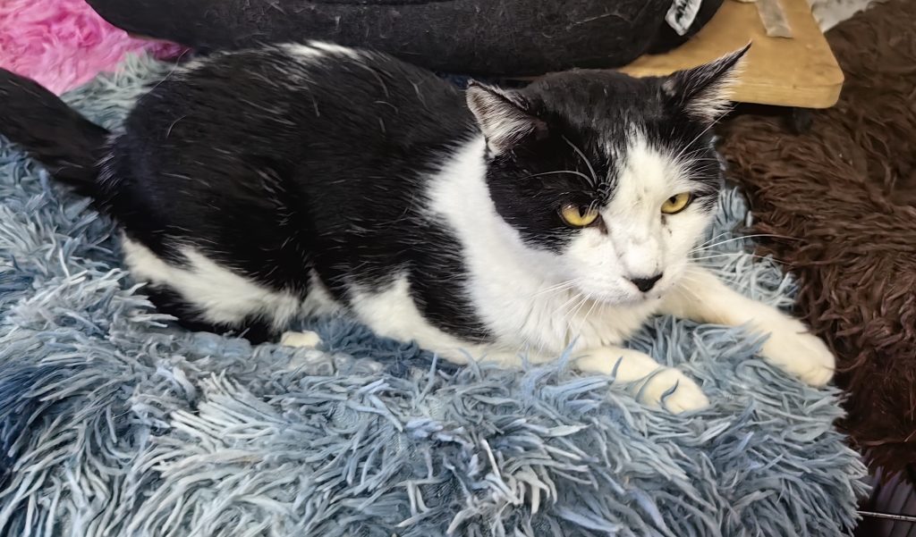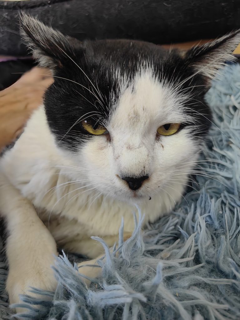 Darvin werd gevonden na een storm. Hij was gewond, zijn lip en kaak waren gewond. Hij had veel bloed. Gelukkig is alles genezen, alleen zijn lip had een paar hechtingen. Hij was zo lief, zo vriendelijk en sociaal dat we hem niet meer op straat hebben gezet nadat hij genezen was.