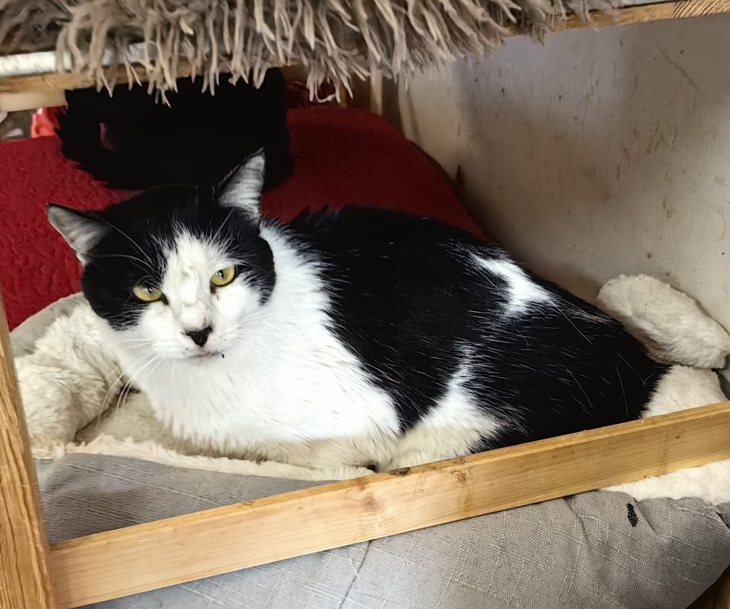Darvin is een heel lieve kat. Hij houdt ervan om geaaid te worden en te knuffelen. Hij is dol op natvoer. Hij is absoluut geen vechter. De anderen slaan hem soms en hij reageert nooit, zijn gezicht heeft wat schrammen. Hij voelt zich niet lekker in de grote groep, want de rescuer heeft ook een paar alfa-katten die hem proberen bang te maken. Maar zodra ze er is volgt hij haar en is hij gelukkiger dan ooit. Hij is een lieverd die met liefde behandeld moet worden.